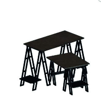 2x A-Gestell niedrig mit 1 Tischblatt kurz