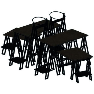 4x A-Gestell niedrig mit 2 Tischblatt kurz